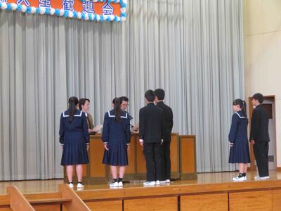 令和8年度前期任命式・新入生歓迎会 投稿: 作成者 (04/19) カテゴリー: 今日の出来事 令和8年度前期任命式がありました。生徒会役員および専門委員長、そして学級委員が任命状を受け取りました。 その後、新入生歓迎会を行いました。豊浦中の生活・きまりの説明や、部活動紹介がありました。 その様子の一部をご紹介します。 Tweet -