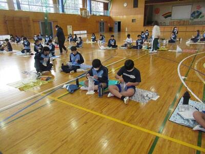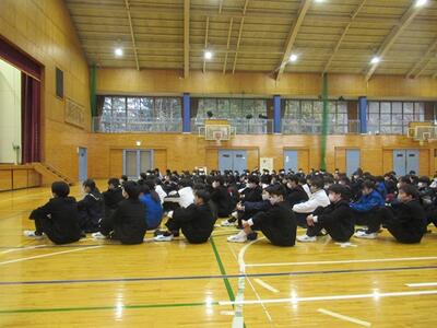 2年生は栄養教諭の先生をお招きして、食に関する指導を受けました。テーマは「スポーツと食事」です。部活動でよい成績を収めたい生徒たちです。興味津々で、一生懸命に話を聞き、考えていました。