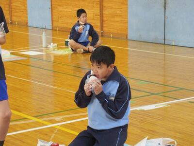 最後におにぎりに講師の先生のお味噌をおにぎりに付けて食べました。とてもおいしかったそうです。