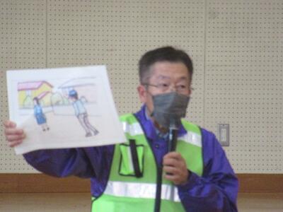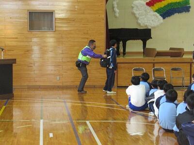 避難後は、登下校中、不審者にカバンをつかまれた時の対応や通報訓練を行いました。