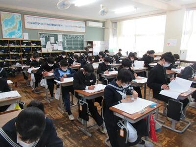 1・2年生は、1年後・2年後をイメージしながら、実力テストを受けました。今年度の定着を把握し、春休みや来年度の学習に役立てられるようにしたいと思います。
